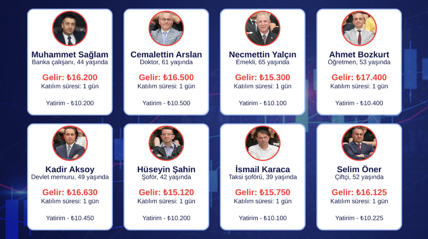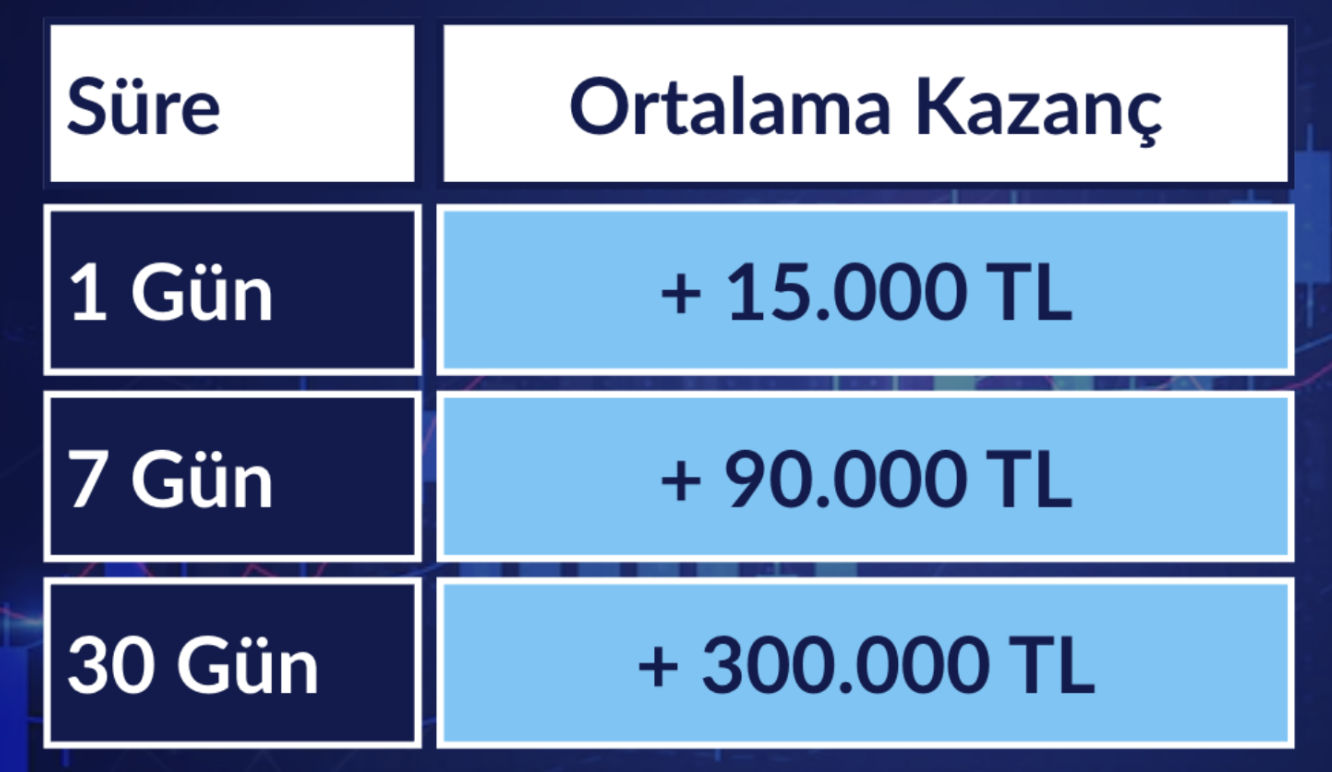 Kayıt olduktan sonra, ilk 24 saat içinde kazanç elde etmeye başlarsınız. Bugün katılanlar, yarın 15.000 TL kazanç alıyor!